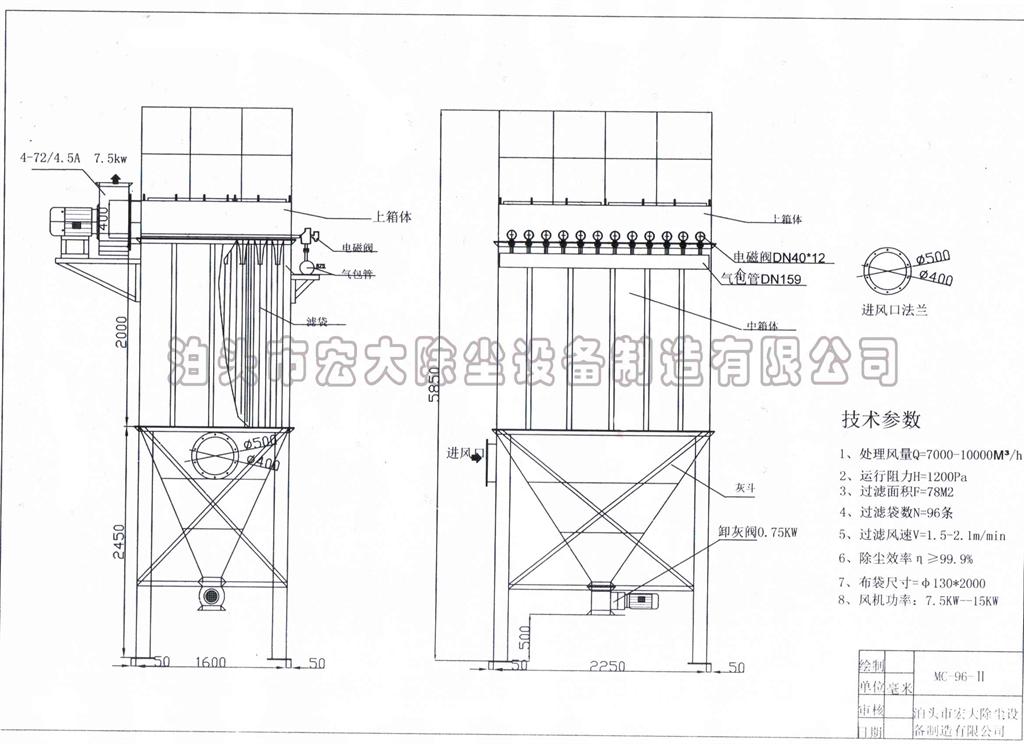 1、MC-Ⅱ型脈沖袋式除塵器在保留了原MC-Ⅰ型除塵器優(yōu)點的基礎(chǔ)上,采用了低阻力的DMF-Z型脈沖電磁閥,使除塵器的控制系統(tǒng)和除塵布袋的壽命延長一倍,減少了維修工作量。