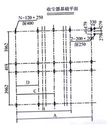 3、設(shè)備外形及基礎(chǔ)(見(jiàn)附圖),我公司還可根據(jù)用戶場(chǎng)地情況設(shè)計(jì)符合用戶要求外形的除塵器。